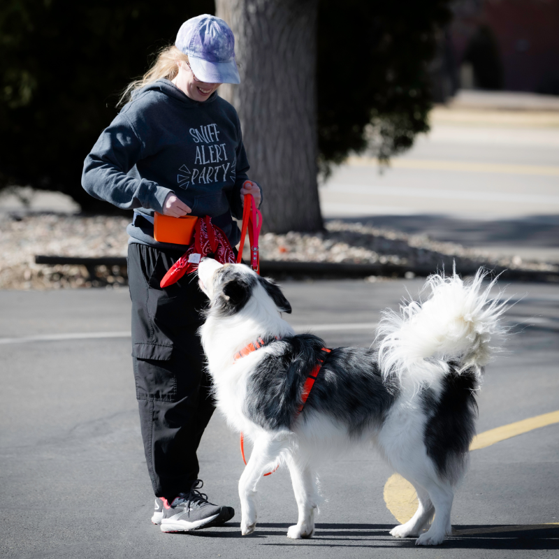 "When I started, I didn't know enough about reactivity to know where to even begin. All of our walks were difficult, especially with the boundless energy of a puppy. After taking the reactivity class, I felt much more informed and in control of what we were striving towards. Learning how critical sleep is, practicing and receiving feedback on all the tools/strategies, and the virtual support lifted my confidence. Bishop has improved so much."